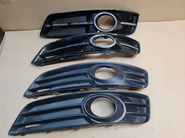 Used left front bumper grille for AUDI A3 LIFT 8P0. The part is in a repaired condition, as shown in the attached images. OEM part numbers include 8P0807681AA and 8P0807681H. Invoice available.