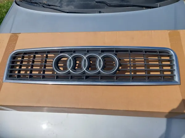 Original grill mask for AUDI A4 B6 (2001-2004) in good condition. All clips are functional. The part is used and comes from Audi OE, featuring the manufacturer's logo. Color: black. Weight with packaging: 5 kg. OEM part number: 8E0853651F BBM.