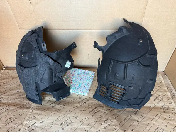 Left front wheel arch set consisting of two parts, suitable for AUDI A8 D4 LIFT 2017. The parts are from a test vehicle with minimal mileage of 20 km, in like-new condition. Photos depict the actual state of the item. Additional parts for this model are available.