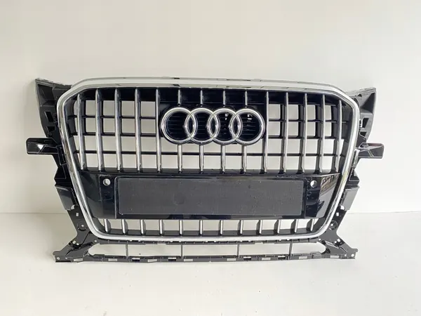 Original front grill for Audi Q5 8R 8R0 S-Line, model years 2012-2016. The grill has minimal chrome defects at the lower part, as shown in the photo, while the rest is in good condition.
