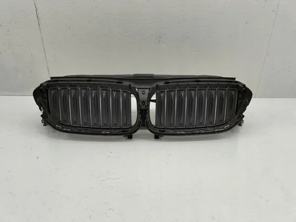 Original BMW grill for 5 Series models G30 and G31, OEM part number 7497279. This used part has a minor crack that is not visible once installed. Please refer to the provided images for details of the item being sold.
