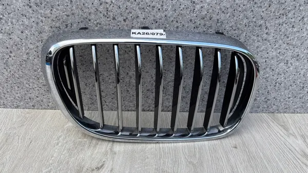 Original right kidney grille for BMW 7 G11 G12, part number 51137357012. The grille is in used condition with scratched vertical ribs. The factory service number is 51137357012. Invoice for purchase is available alongside the shipping document.