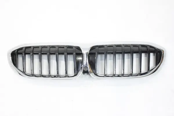Original BMW luxury bumper grille (chromed) with black slats. Item shows visible scratches as seen in the photos. Part number: 7457041 51137457041. Compatible with models: 3' G20 Saloon and 3' G21 Touring. Condition: Used.