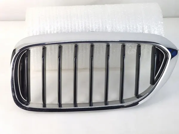 Original left kidney grille for BMW G30 and G31, part number 7383519. This used part is compatible with BMW 5 Series G30 and G31 models. It is an OE part with the manufacturer's logo. The product weighs 2 kg and comes with a VAT invoice. For any questions regarding compatibility, please reach out for assistance.