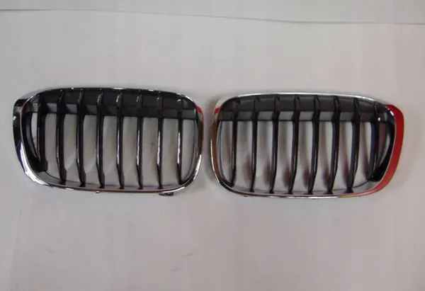 Complete set of upper radiator grille for BMW X1 F48 F49 2015. Parts are from dismantled vehicles and are in accordance with their production year. This set includes two black kidney grilles, right and left, designed for the M-Package. The vehicle had a mechanical transmission and was produced between 2015 and 2022. Condition of the offered goods is shown in the photos. OEM part numbers are 7383364 and 7383363.