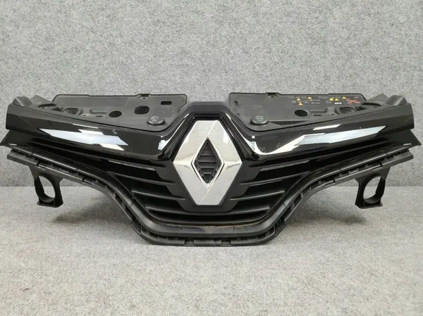 Original used bumper grille cover for Renault Captur, model years 2013 to 2017. This part is located at the front and has the OEM number 623102335R-SCZ. The item is in authentic condition as shown in the images.