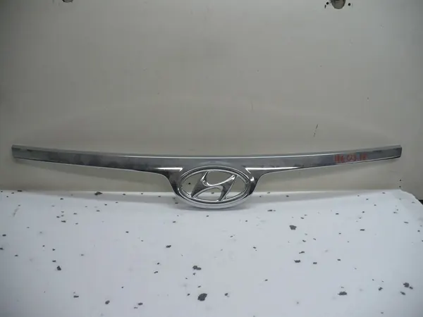 Used chrom grille emblem for Hyundai I30, suitable for models from 2007 to 2010. This part is in good condition and is an original OEM component with the part number 86352-2L000. It is designed for the front of the vehicle and is compatible with passenger cars. The color is gray, and it is a European version. Invoice available upon request.