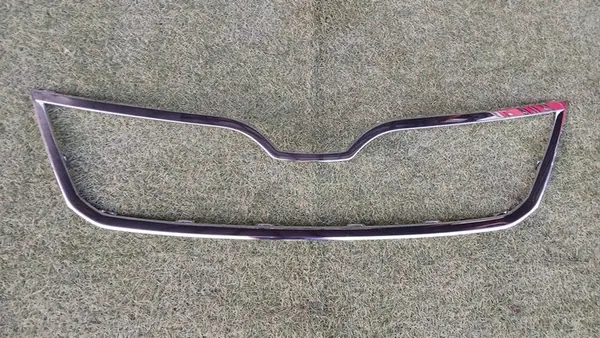 Original chrome grille trim for Skoda Rapid, model years 2012-2019. This part is in perfect condition and has never been installed. OEM part number: 5JA853607. It is suitable for passenger cars and is silver in color. The trim is designed for front installation.