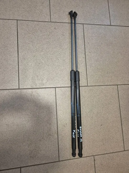 Hood lifters set for Dacia Duster II SUV, 2019 model. Right-hand drive. OEM part number: 654702645R. Used condition. Front installation. Manufacturer: Dacia OE.