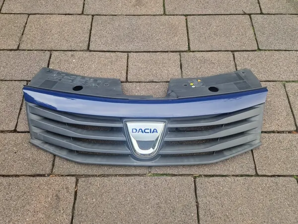 Complete front bumper grille for DACIA SANDERO I, OEM part number 8200735104. This part is suitable for models from 2008 to 2012 and is in used condition. It is a genuine part with the manufacturer's logo (OE). The item is from a European version vehicle. The product is as shown in the real photo.