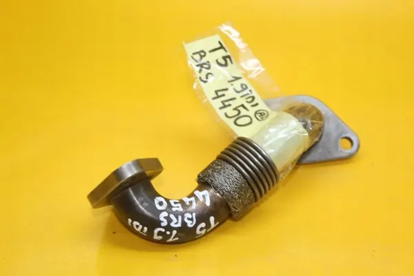 EGR pipe in used condition for Volkswagen Transporter T5, produced between 2004-2009. This part is compatible with models featuring the 1.9 TDI BRS engine. The OEM part number is 038131521BD. Please compare with your existing part for compatibility.