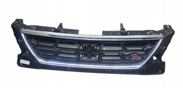 This is a front bumper grill for the SEAT LEON III FR. It is a used part in black color, suitable for passenger cars. The OEM part number is 5F0853654J. This grill is an original part with the manufacturer's logo (OE) and is intended for the front installation. It is compatible with the European version of the vehicle.