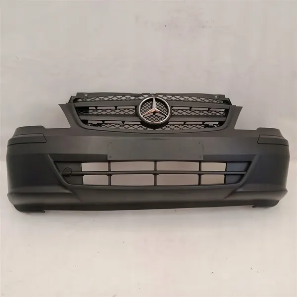 Original front bumper for Mercedes Vito 639 W639 Lift, OEM A6398806900. Condition: used, not glued or repaired, with undamaged mounts. It has scratches and normal signs of use. Version: - No holes for parking sensors - No holes for washers. Photos accurately depict the condition and completeness of the part. Please review the images carefully.