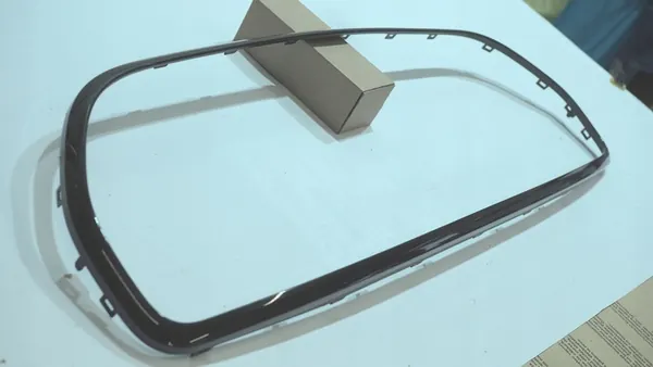 Original front grille frame for Mini Cooper SE F56 in used condition. The part is black and made by Mini OE. It is suitable for passenger cars and is designed for front installation. The product weighs 2 kg and comes with a VAT invoice. OEM number is 51119450552.