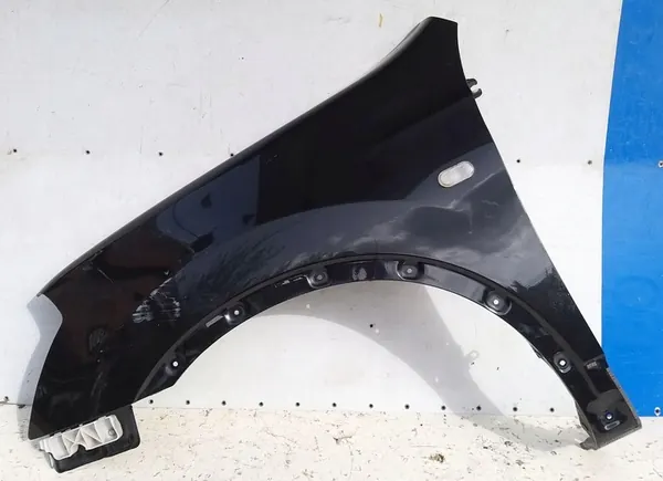 Used front left fender for Nissan Qashqai J10, model years 2007 to 2010, in black. This is an original part from Nissan, marked with the manufacturer's logo (OE). The fender is in used condition and is suitable for passenger cars.