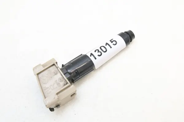 Headlight washer nozzle for Mazda 3 III, production years 2013 to 2017, pre-facelift. Condition: Used original. One clip is missing; other clips are intact (see photo). Mounting frame condition: Very good, not repaired, original clips intact (see photo). Body type: All body types. Car version: All versions. Available side: Front right passenger side. Type: Bare washer nozzle with mounting frame. Color: Black plastic as shown in the photo. Description: Used, original, in the described condition. Quantity: One piece shown in the gallery. Part number: uz13015 MHM.