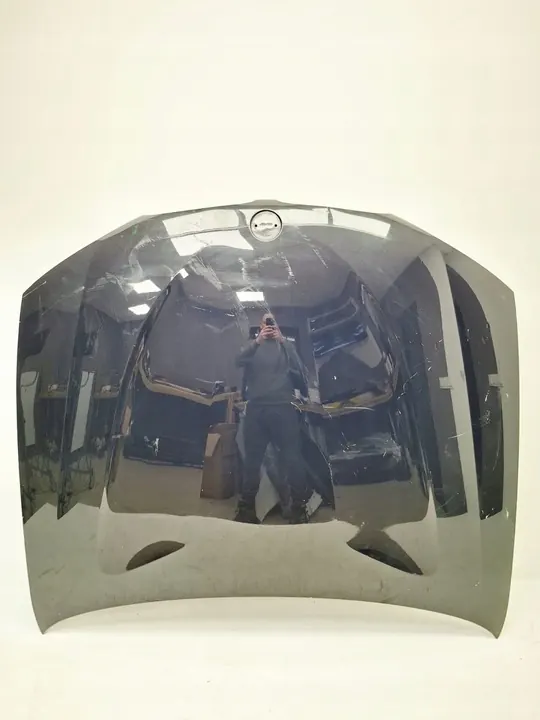 Hood available for BMW X3 F25 and X4 F26 from 2010 to 2017. The hood has been repaired in the marked area and requires painting.