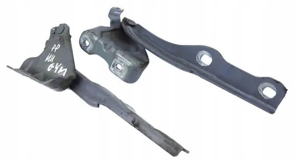 Hood hinges for the front left and right of Opel Mokka A X I, model year 2012. Part numbers include 95141369, 95141368, 20760724, 95421581, 42732044, 20760723, 95421580, and 42732043. The part is used and was removed from a pre-facelift Opel Mokka A X I with a 1.7 CDTI engine (A17DTS) and M32 transmission. The paint code is GYM, and upholstery code is TAHT. The item is sold as a complete set and includes an electronic component with a PIN code.
