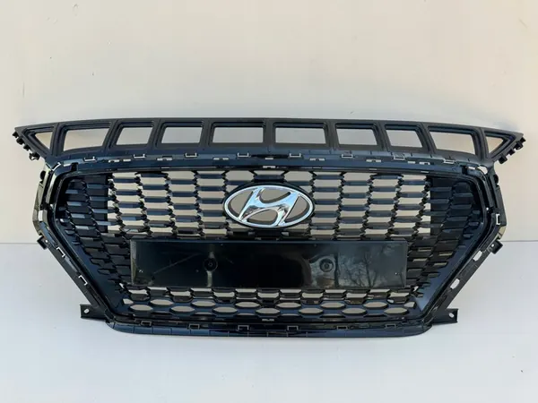 Used Hyundai grill for I30 III, production year 2017 onwards. Part number: 86351-G4000. The item shows signs of use and transport, including scratches and scuffs. All parts are original, European version, and not repaired. Weight with packaging: 5 kg. Invoice available upon request.