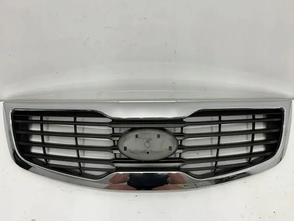 Grill 86352-3W000 for KIA Sportage III. The part is used and shows normal signs of use, with no damages and intact mounts. There are no hidden damages. Each part is accurately described, and any damage is marked. For body elements, repainting is generally required unless stated otherwise. The part is black and weighs 4 kg. OEM number: 86350-3W000p.
