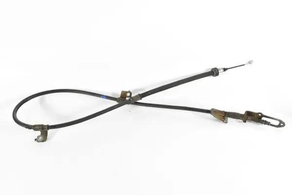 Left hand parking brake cable for Kia Sportage IV (QL, QLE) and Hyundai Tucson III. OEM part number: 59760-D7000. This used part shows surface rust. Compatible with various models from 2015 to 2022, including different engine types and body styles. Vehicle details: Kia Sportage, generation IV, manufactured in 2018. Note: This part is from disassembly.