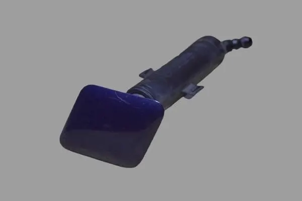 Used left headlight washer for SKODA YETI (5L), part number 5L0955965. This item shows normal signs of use and transport. The part is in used condition with scratches and chips. It is compatible with delivery vehicles and is an original part from Skoda with the manufacturer's logo (OE). The item comes with a VAT invoice.
