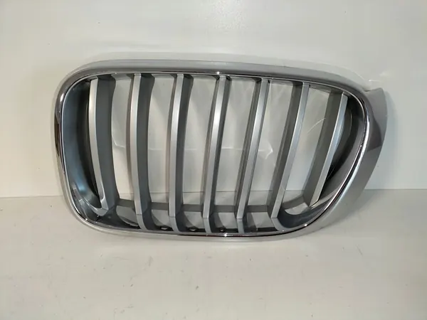 Left kidney grille for BMW X3 F25 LIFT (2014-2017) and BMW X4 F26 (2014-). The item is in used condition, as shown in the photos. It is an original part with the OEM number 51117210725, 7210725. The grille is suitable for painting. This part is from the front side and is of European version quality.