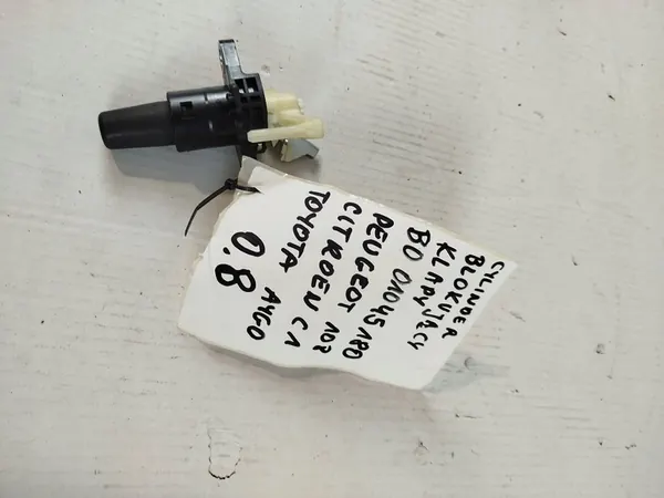 Lock cylinder for Peugeot 108, Citroen C1, and Toyota Aygo, OEM B001045180. Condition: Used. Installation side: Rear. Please review all photos for details. Body parts may require painting.