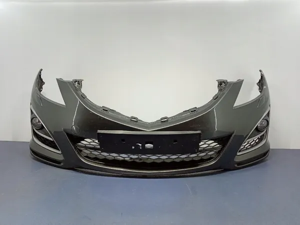 This listing is for a front bumper compatible with the Mazda 6 II GH Liftback (2009-2013). It includes halogen lights, grilles, and headlight washer nozzles. There are visible scratches as shown in the photos. The color code is 38R, and the original part number is GDK4-50031. The vehicle type is passenger cars, and the part is in used condition. A VAT invoice will be issued.