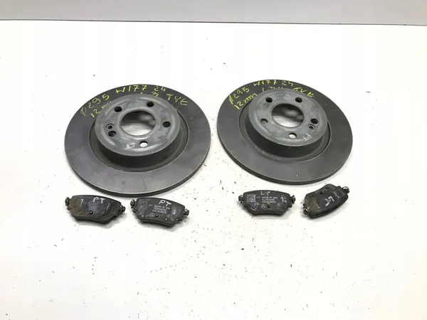 Rear brake discs and pads for MERCEDES A W177 W247 1.3H 2024. The vehicle has a production year of 2024, with a 1.3L engine and 161 HP. The part number is A2474230212. The installation side is rear, and the condition is used but in very good condition. The components are original Mercedes-Benz OE quality. The vehicle type is passenger cars, and the brake discs are solid. A VAT invoice can be issued upon request.