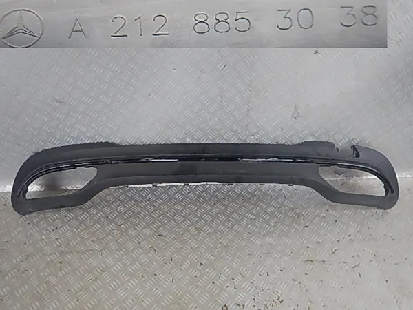Rear bumper spoiler, part number A2128853038, for Mercedes E-Class W212 AMG post-facelift. The part is used and comes in black color. It is manufactured by Mercedes-Benz OE, ensuring original quality with the manufacturer's logo. The packaging is replacement. Suitable for passenger cars. Invoice can be issued.