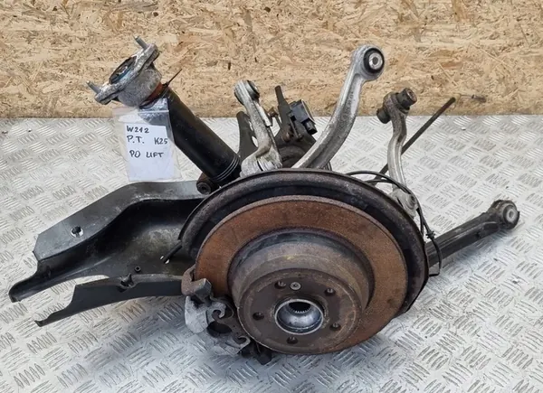 Used MERCEDES W212 POLIFT right rear suspension for 2.2 D vehicles. The part numbers are A2123500241 for the knuckle and A2123204730 for the shock absorber. This item is in good condition and is an original part with the manufacturer's logo (OE).
