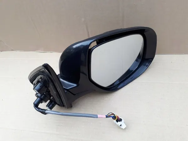 Right mirror for Mitsubishi ASX, model years 2010-2021. This is a used part without a painted cover. It features a 9-pin connector and is of European version. The OEM part number is 7632B744. Available for viewing in the vicinity of Mińsk Mazowiecki.