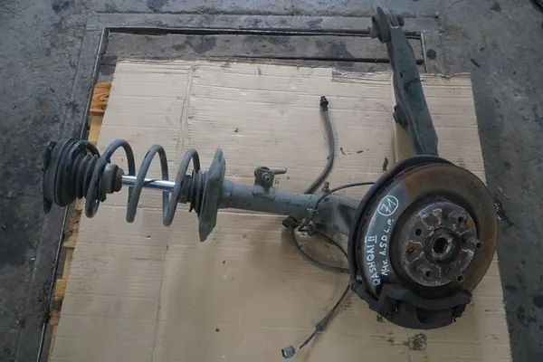Left front McPherson for Nissan Qashqai J11, model FTKARBYJ11TEAA-AAB, engine 1.5DCI (K9K), year 2014, mileage 115,000 miles, color Z11 - Black (Metallic). The item is used and is a genuine Nissan part (OEM 3465768724678). The image represents the actual condition of the part. Please ensure compatibility with your vehicle model before purchase.