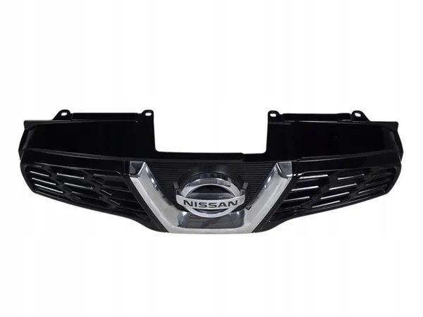 Available is an original complete front grille for Nissan Qashqai J10 Lift. The chrome is in good condition, and all mountings are intact. This part is used and comes from a dismantling in Germany.