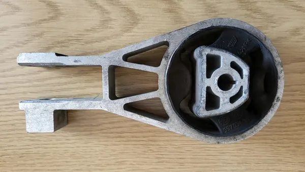 Engine mount bracket for OPEL CORSA E and OPEL ADAM. This complete rear gearbox mount fits 1.2 XER and 1.4 XER petrol engines without turbo. If needed, screws can be included. The part is used, fully functional, and undamaged.
