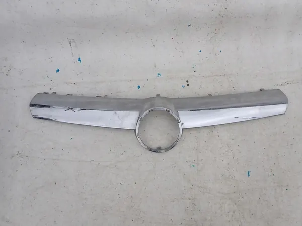 Chrome grille trim for Opel Zafira B (2005-2008). The part is damaged in visible areas as shown in the photos. Additional scratches may be present due to storage, handling, and transport of various parts. In our opinion, this part requires repainting.