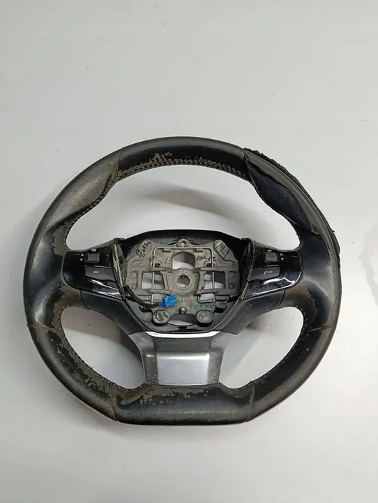 Used steering wheel for Peugeot 308 II T9 SW (2013-2017). Part number: 98084115XU. OEM number: 623690200R. Other numbers: 28424206. Paint code: EKUD. Condition is visible in the photos. This part is original with the manufacturer's logo (OE).