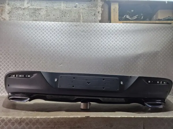 Rear bumper diffuser for Mercedes GLE W292. This part is used and suitable for painting. It is designed for the rear side of the vehicle. The product weighs 10 kg and is manufactured by Mercedes. An invoice can be issued for this item. Quality is original with the manufacturer's logo (OEM, OES).