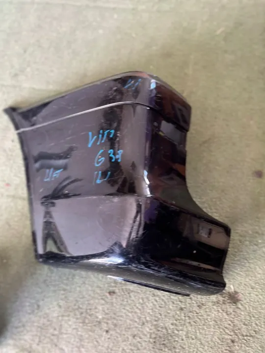 Used left rear bumper corner for Mercedes Vito 639 Lift. The part number is A6398805771. It has one broken mount. The bumper is painted black and is an original part with the manufacturer's logo (OE).