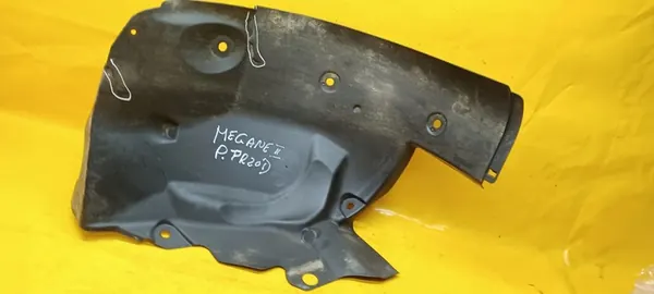 Rear right wheel arch for Megane II, OEM 8200073429. Condition as shown in images, with two cracks marked. This part is used and suitable for passenger cars. The product weighs 1 kg with packaging. It is an original part with the manufacturer's logo (OE) and is of European version.