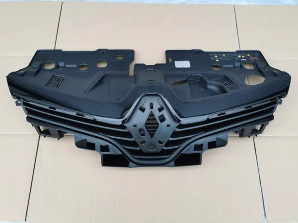 Used front grill for RENAULT CLIO 4 IV LIFT 16-. OEM part number 622562397R-BAX. The item may have visible damages or repairs, as shown in the photos. The images depict the actual condition of the item.