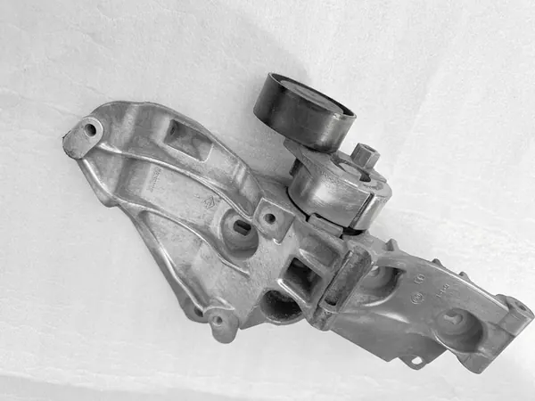Used Renault OE 8200425034 alternator mount compatible with Dacia Duster, Sandero, Logan, Renault Modus, Clio, and Scenic vehicles equipped with a 1.5 DCI diesel engine. The part is in the condition shown in the photos. It is an original part with the manufacturer's logo (OEM, OES).