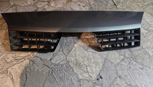 Used silver grill for RENAULT SCENIC II, model years 2003-2006. This is an original equipment manufacturer (OEM) part with the catalog number 7701474778. It is suitable for personal vehicles and weighs 1 kg with packaging. Invoice available upon request.