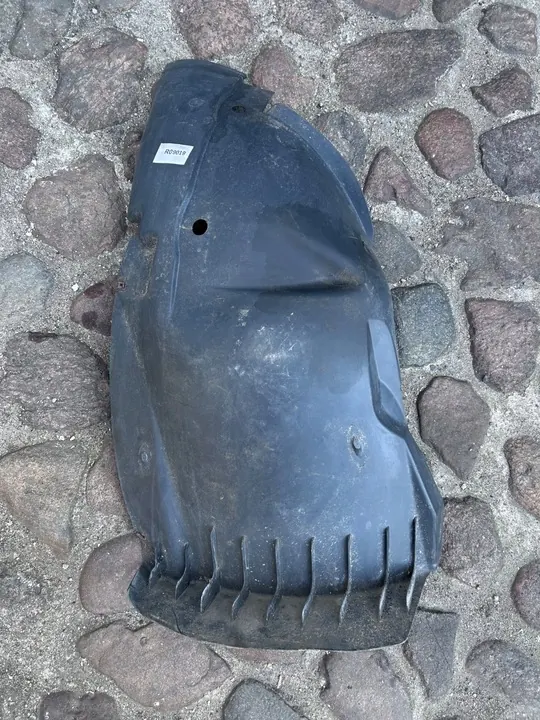 Front left wheel arch for RENAULT TRAFIC II, used condition with visible signs of use. OEM part number: 8200508349. Suitable for commercial vehicles. The item is part of the front wheel arch assembly and includes various protective elements. Warehouse number: R09019.