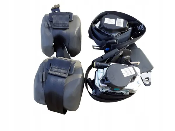 Used front and rear seat belts for Peugeot 408 P54. This set includes left and right belts. The condition of the parts is visible in the images. OEM part number: 98388762XX.