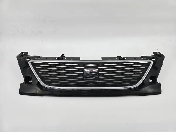 Used SEAT OE 5F0853654F radiator grille for the Leon (5F) model, produced in 2016. The part is black and has a universal fit. It is an original part with the manufacturer's logo (OE). A VAT invoice can be issued for this part.