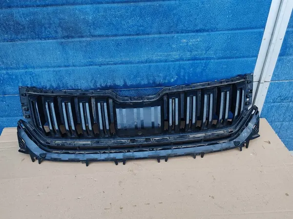 Original front grill for SKODA KODIAQ from 2017 to 2020. The part is used and may have scratches. OEM part number is 565853653B. This grill is suitable for passenger cars and is manufactured by Skoda OE. Further details can be provided upon request.