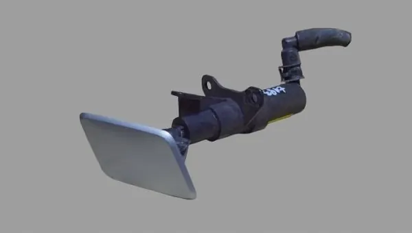 Used SKODA OCTAVIA II right headlight washer, OEM part number 1Z0955966A. The item shows normal signs of use and transport. There are scratches and chips present. This is a UK version.