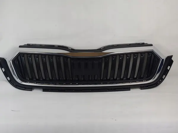 Original center grill frame for SKODA OCTAVIA IV 2020-. The item is in a condition close to new but has some scratches, hence listed as used. OEM part numbers include 5E3853655, 5E3853653, and 5E38537612ZZ. The product weighs 5 kg and comes with a VAT invoice.